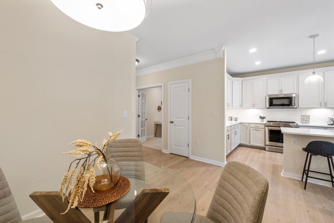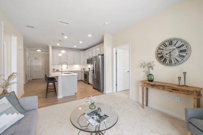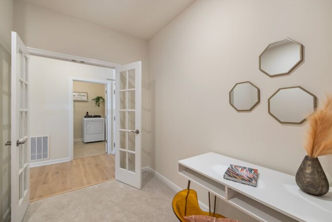 This 2024 construction offers single-level living with 2 bedrooms + flex room. The open-concept layout creates an airy, contemporary atmosphere. The bonus flex room/den adapts effortlessly to your needs. The stylish white kitchen showcases shaker cabinets with ample storage & a center island and flows seamlessly into the dining/living areas for dinner conversations. Enjoy your private outdoor space in your enclosed patio accessible off of the living room.The primary suite impresses with a huge walk in custom closet & a luxurious en-suite bath with double vanity. The second bed is spacious and bright. The one-car garage also has additional storage space, while elevator access & central air conditioning ensure year-round comfort. This unit provides a serene sanctuary. Close to major highways but still secluded and peaceful on an exclusive hilltop setting at Highland at Vale, this community combines new construction benefits with the privacy of an elevated oasis.