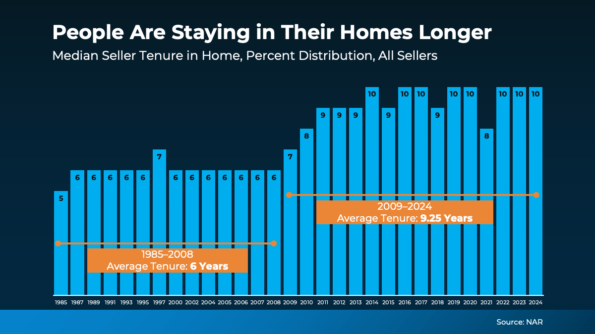 Data from the National Association of Realtors (NAR) also shows people are staying in their homes longer than they used to, with the average tenure now being close to 10 years (see graph below):